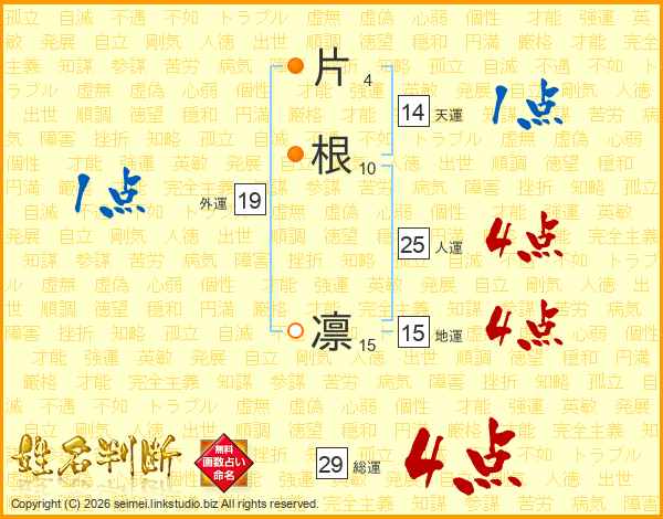 片根凛さんの総運は29画の4点!