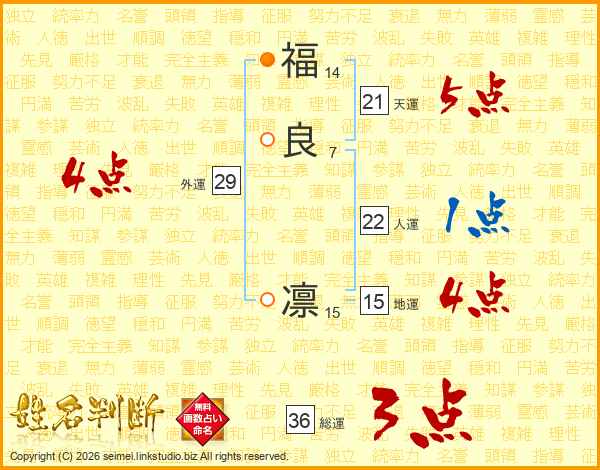 福(14画)良(7画) 凛(15画)