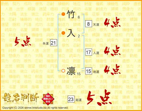 竹入凛さんの外運は21画の5点!