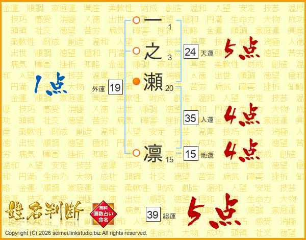 一(1画)之(3画)瀬(20画) 凛(15画)