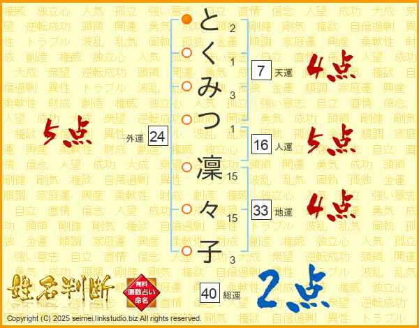 と(2画)く(1画)み(3画)つ(1画) 凜(15画)々(15画)子(3画)