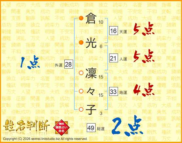 倉光凜々子さんの総運は49画の2点!