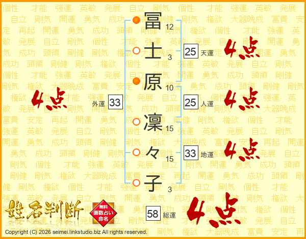 冨士原凜々子さんの総運は58画の4点!