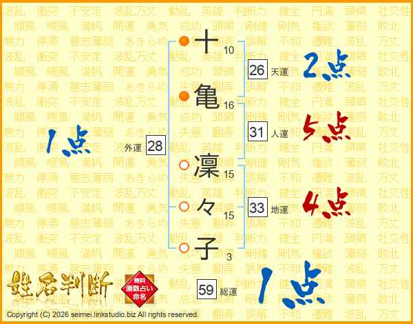 十亀凜々子さんの天運は26画の2点!