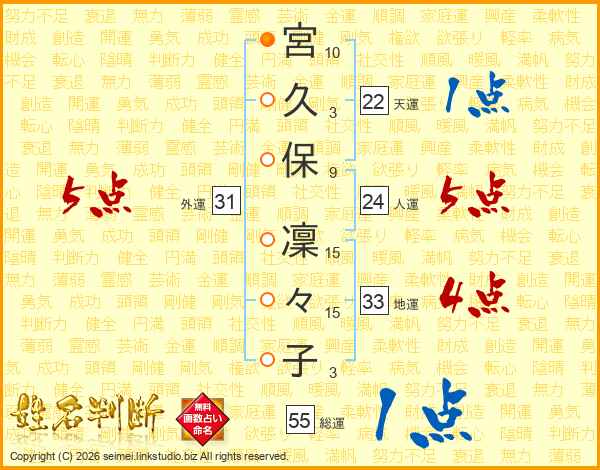 宮久保凜々子さんの外運は31画の5点!