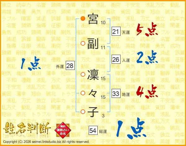 宮副凜々子さんの総運は54画の1点!