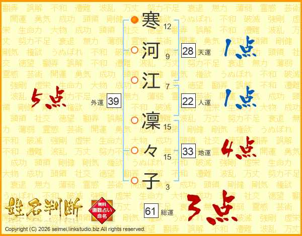 寒河江凜々子さんの外運は39画の5点!