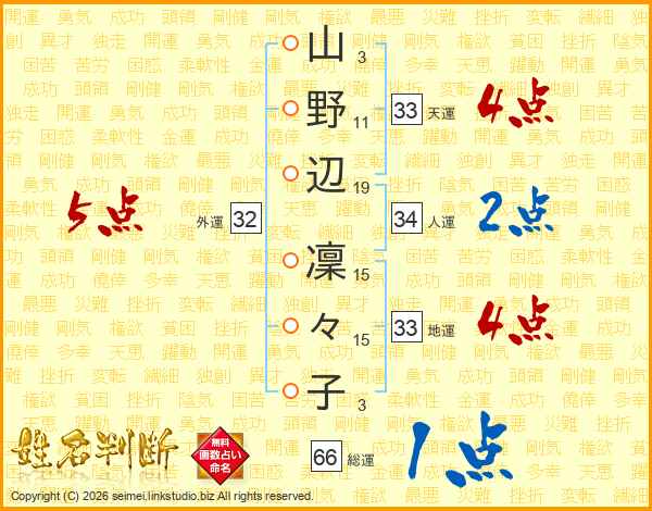 山野辺凜々子さんの天運は33画の4点!