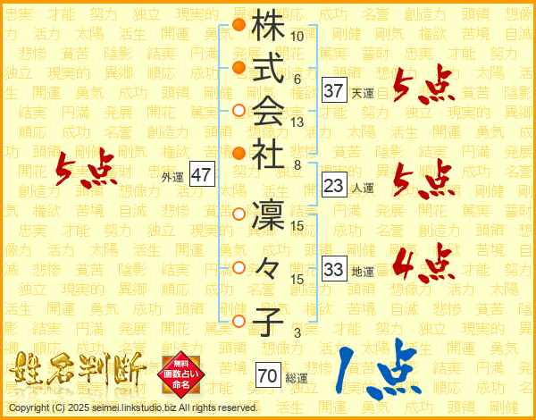 株式会社凜々子さんの総運は70画の1点!