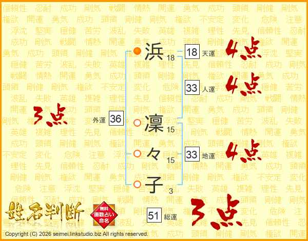 浜凜々子さんの人運は33画の4点!