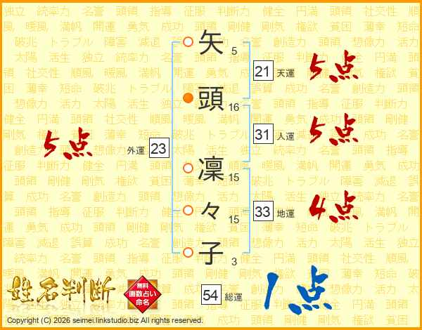 矢頭凜々子さんの総運は54画の1点!