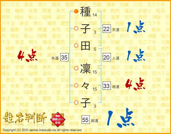 種(14画)子(3画)田(5画) 凜(15画)々(15画)子(3画)