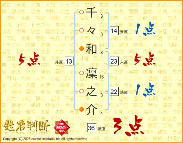 千々和凜之介さんの外運は13画の5点!