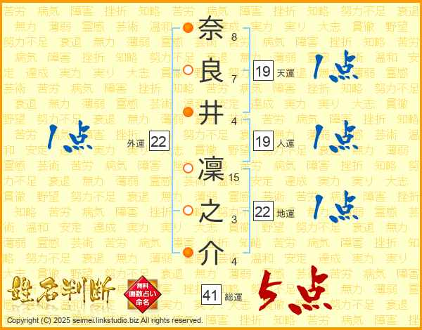 奈(8画)良(7画)井(4画) 凜(15画)之(3画)介(4画)