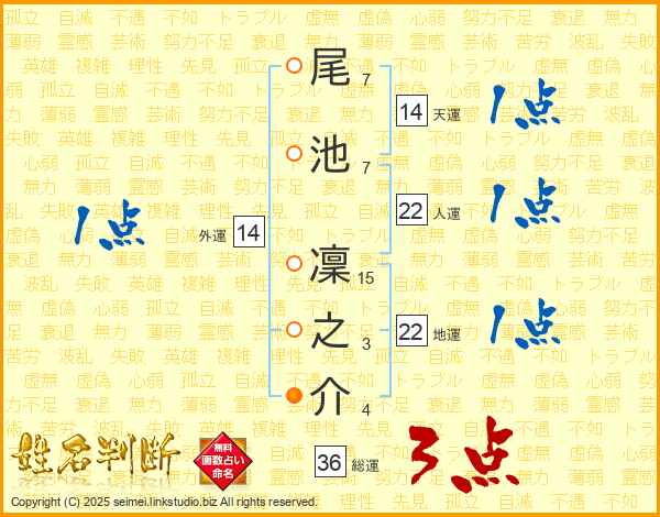 尾(7画)池(7画) 凜(15画)之(3画)介(4画)