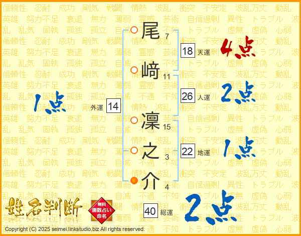 尾(7画)﨑(11画) 凜(15画)之(3画)介(4画)