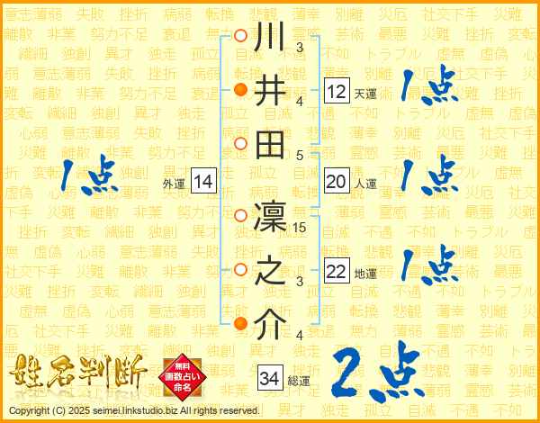 川(3画)井(4画)田(5画) 凜(15画)之(3画)介(4画)