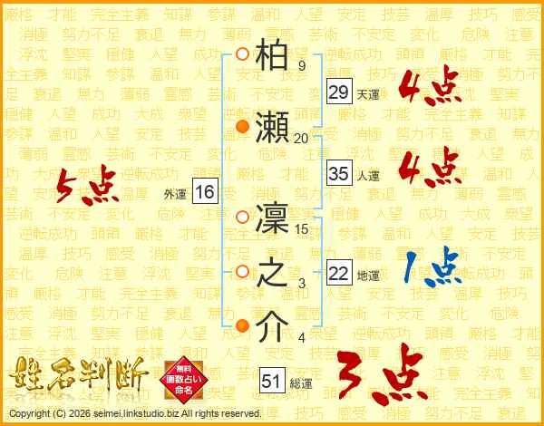 柏(9画)瀬(20画) 凜(15画)之(3画)介(4画)