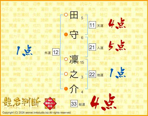 田守凜之介さんの総運は33画の4点!