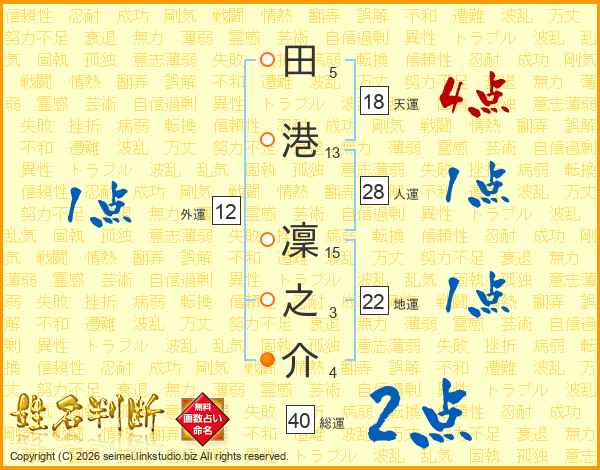 田港凜之介さんの天運は18画の4点!