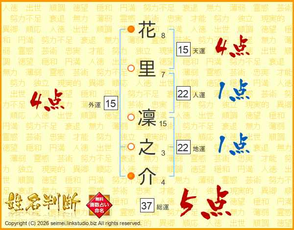 花里凜之介さんの総運は37画の5点!