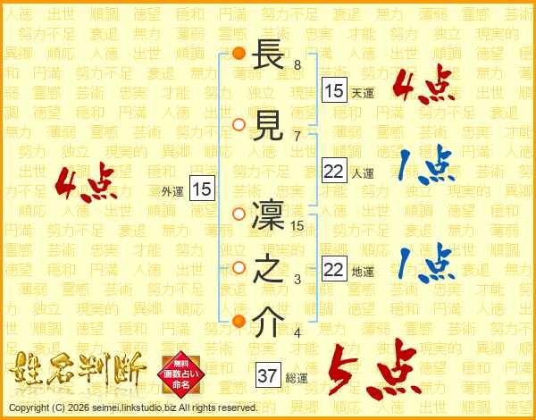 長見凜之介さんの総運は37画の5点!