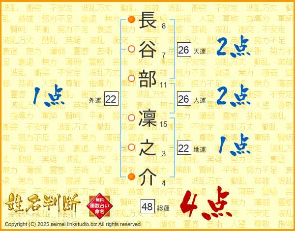長谷部凜之介さんの総運は48画の4点!