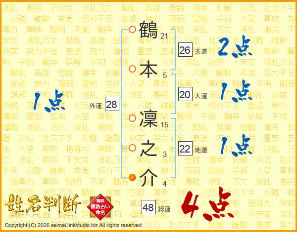鶴本凜之介さんの総運は48画の4点!