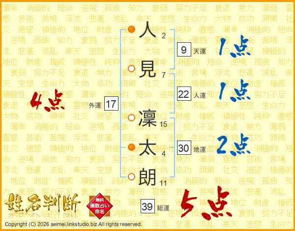 人見凜太朗さんの総運は39画の5点!