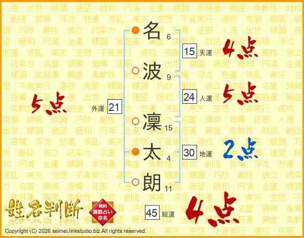 名波凜太朗さんの総運は45画の4点!