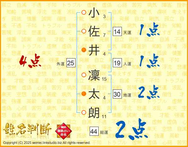小(3画)佐(7画)井(4画) 凜(15画)太(4画)朗(11画)