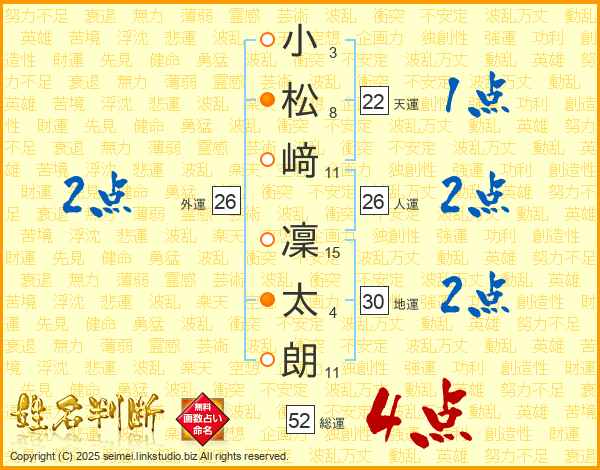小松﨑凜太朗さんの総運は52画の4点!