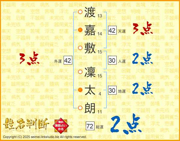 渡嘉敷凜太朗さんの総運は72画の2点!
