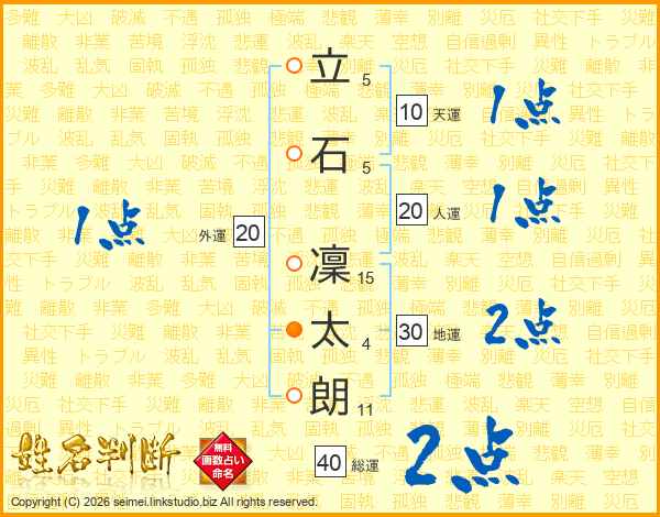 立石凜太朗さんの地運は30画の2点!