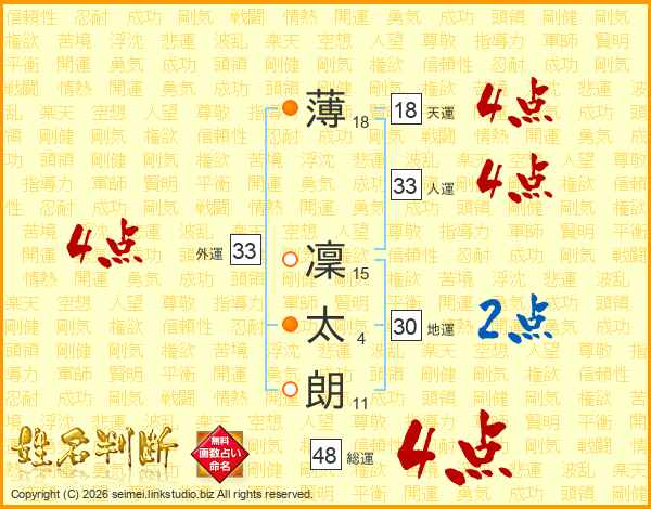 薄凜太朗さんの人運は33画の4点!