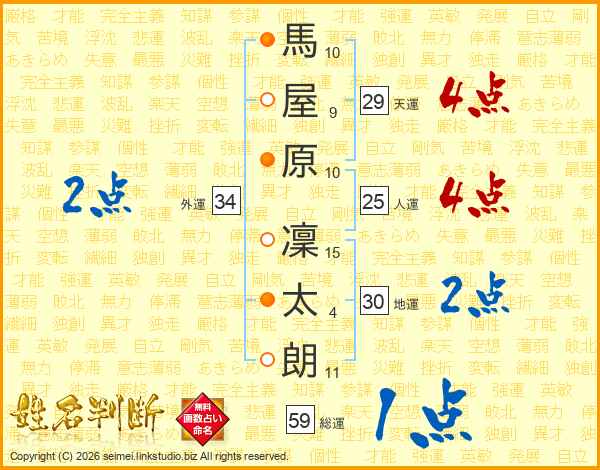 馬屋原凜太朗さんの天運は29画の4点!