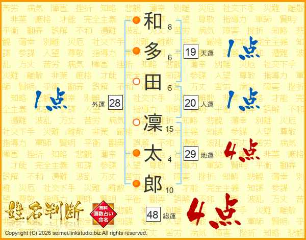 和多田凜太郎さんの総運は48画の4点!