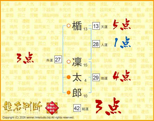 楯(13画) 凜(15画)太(4画)郎(10画)