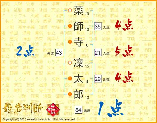 薬師寺凜太郎さんの総運は64画の1点!
