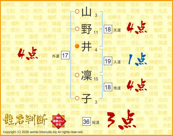 山野井凜子さんの天運は18画の4点!