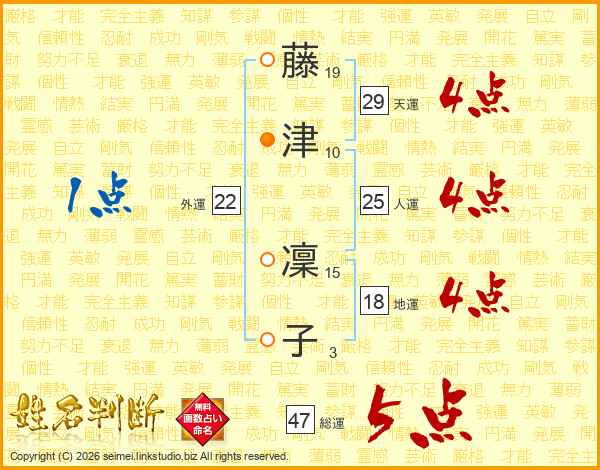 藤津凜子さんの総運は47画の5点!