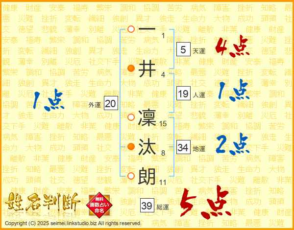 一(1画)井(4画) 凜(15画)汰(8画)朗(11画)