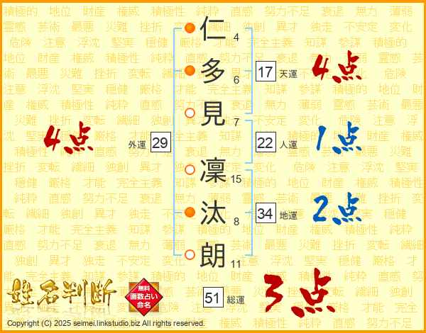 仁多見凜汰朗さんの総運は51画の3点!