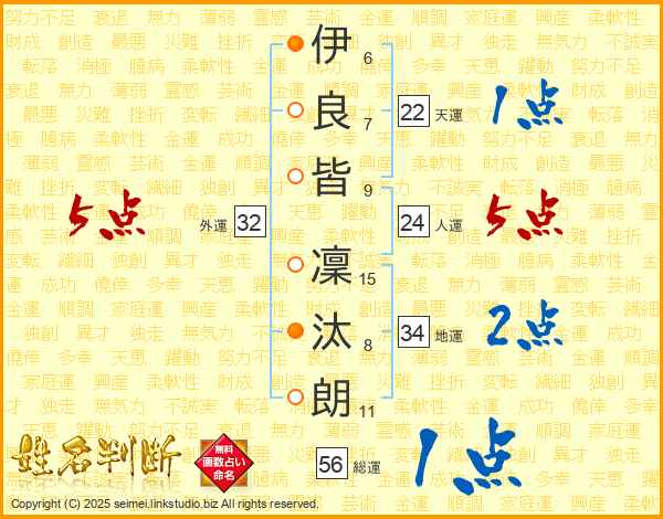 伊良皆凜汰朗さんの外運は32画の5点!