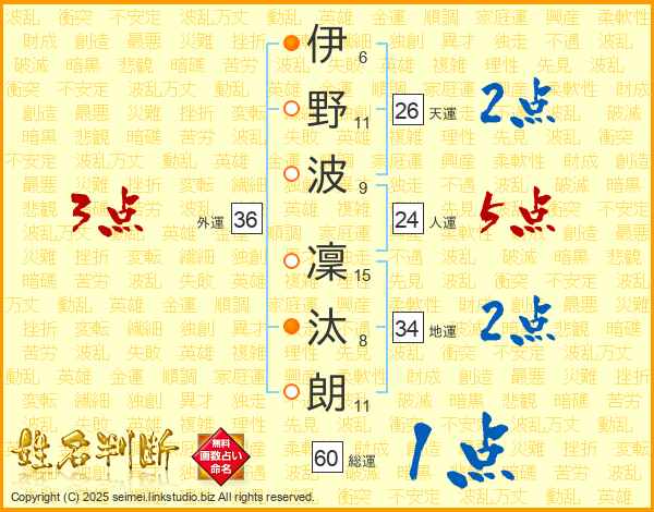伊野波凜汰朗さんの天運は26画の2点!