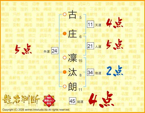 古庄凜汰朗さんの総運は45画の4点!