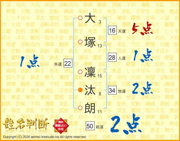 大塚凜汰朗さんの地運は34画の2点!