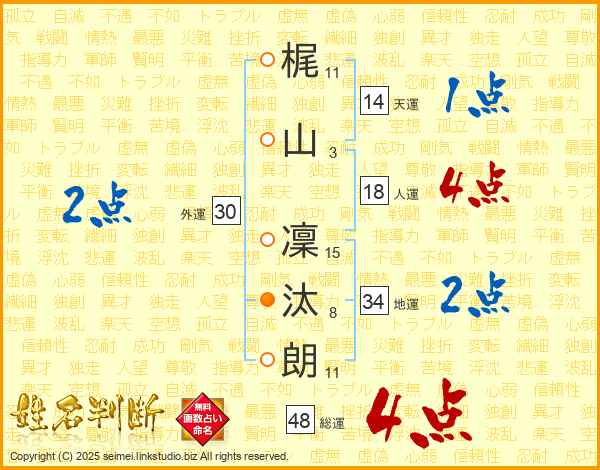 梶山凜汰朗さんの総運は48画の4点!