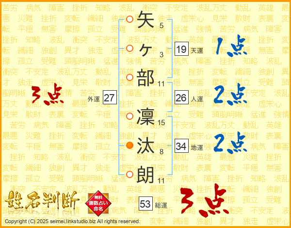 矢ヶ部凜汰朗さんの地運は34画の2点!