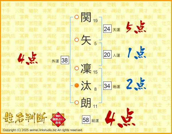 関矢凜汰朗さんの総運は58画の4点!
